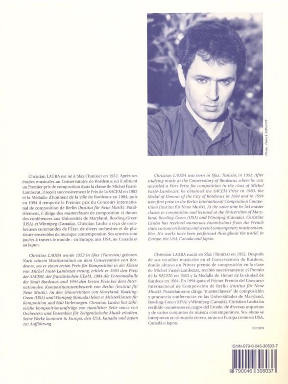 Born in Tunisia in 1952, Christian Lauba has been a prominent contemporary composer, winning many prizes since his graduation from the Conservatory of Bordeaux during the mid-1980s. Lauba won First Pr...