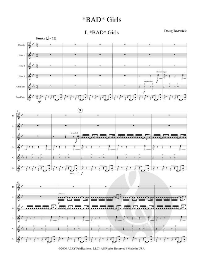 *BAD* Girls; Billie; Cass; Mahalia; Janis Five movements, each based upon a familiar style of popular music, with the first, *BAD* Girls, based on rap music. (Quite a trick!) Instrumentation: Piccolo,...