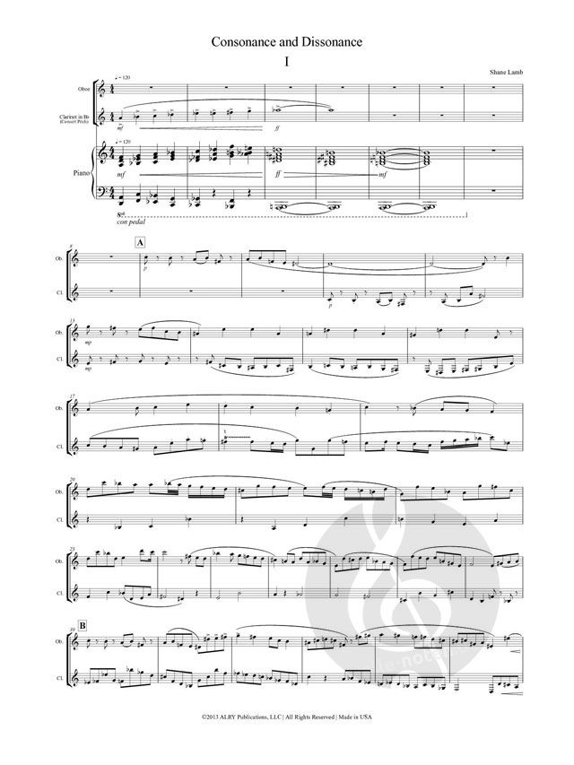 for Oboe, Clarinet and Piano. Taken from the program notes: 'Consonance and Dissonance explores the contrasting tones of Oboe and Clarinet. Throughout the piece, harmonies shift in and out of dissonan...