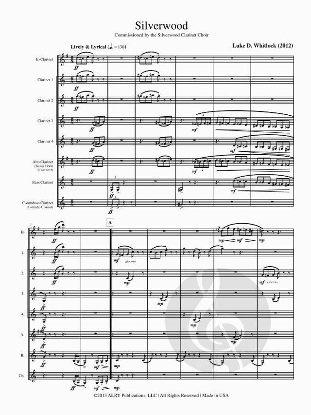 Silverwood is a bright and sprightly march composed by British composer Luke Whitlock. It was commissioned by the Silverwood Clarinet Choir in Syracuse, New York, and is primarily in 6/8 meter with a...