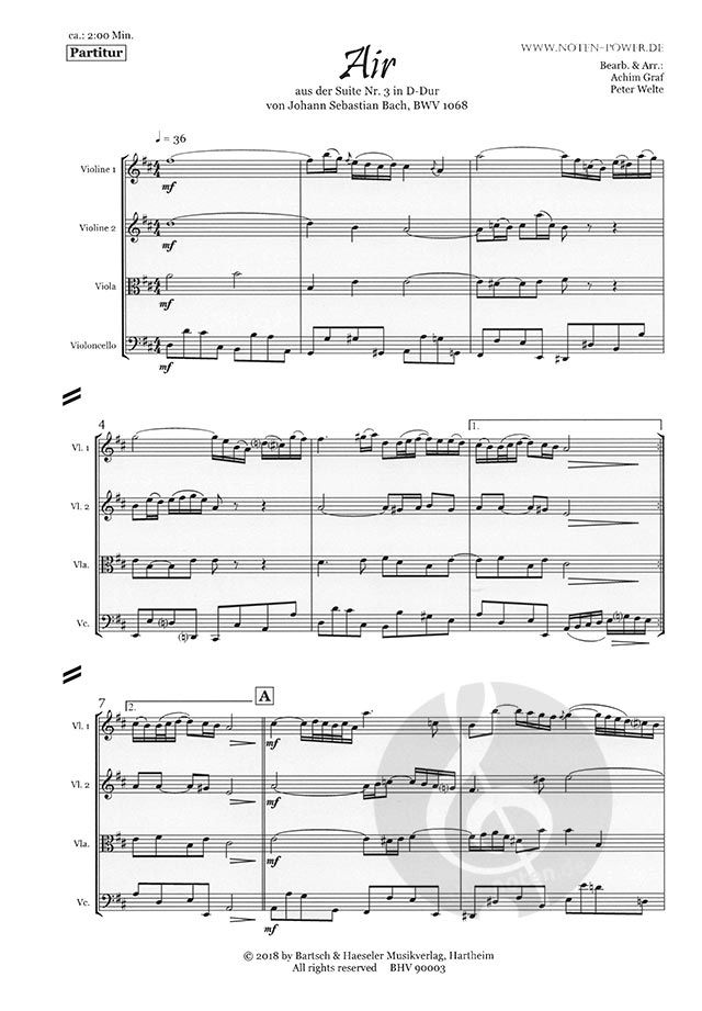 Inhalt: Direktion und Einzelstimmen Violine 1 + 2, Viola, Violoncello aus dem Notenbüchlein der Anna Magdalena Bach
