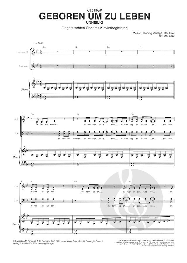 Klavierpartitur nur bei gleichzeitiger Bestellung der Chorpartitur in Mindestbestellmenge erhältlich!