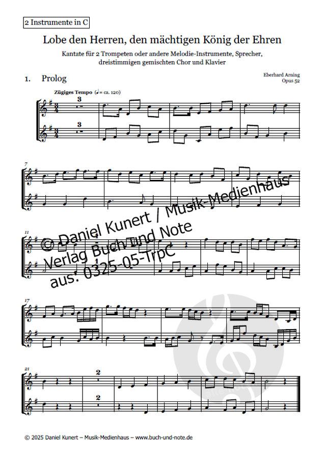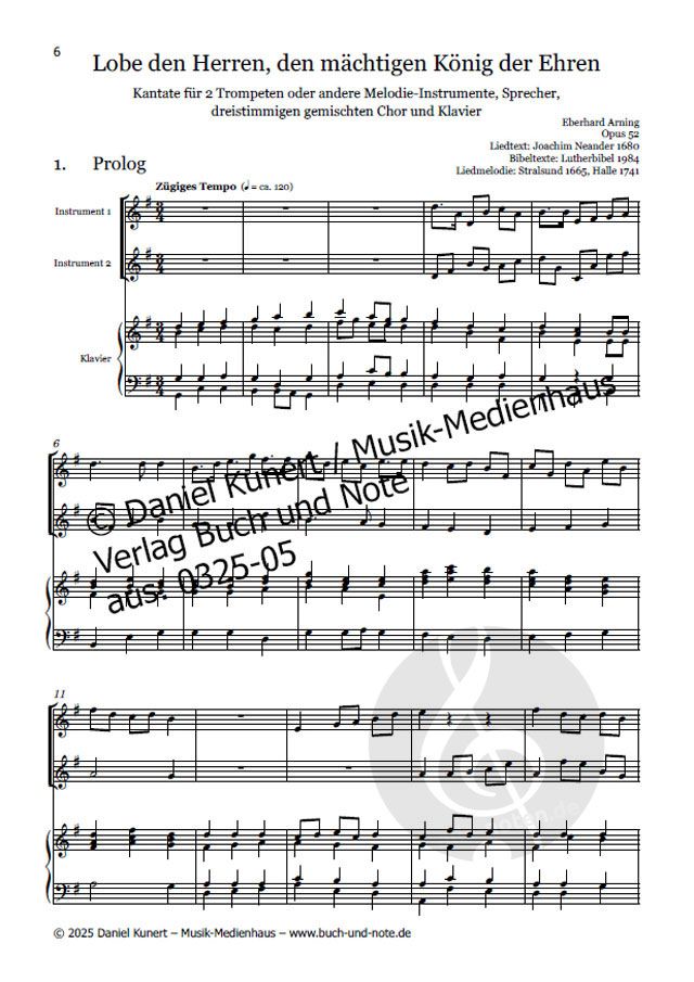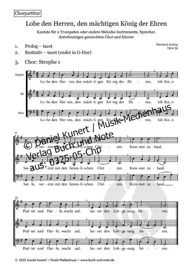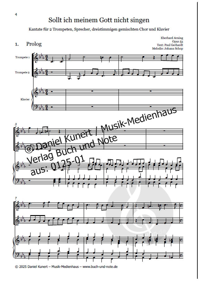 - 2 Trompeten, Sprecher, Gemischter Chor (3-stimmig) und Klavier