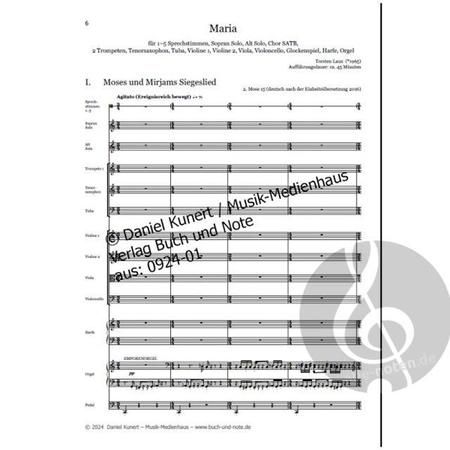 - 1-5 Sprecher, Soli (SA), Gemischter Chor (SATB) und Ensemble