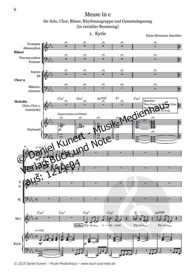 Eine "Rock-Messe" für variable Besetzung Diese Rock-Messe in c-moll entstand aus der kirchenmusikalischen Praxis in Gottesdienst und Konzert. Klaus-Hermann Anschütz, Dekanatskirchenmusiker in Celle,...