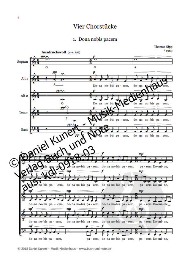 Beate Leibe, bereits bekannt durch ihre Orgelwerke, veröffentlicht mit "Dona nobis pacem" ihr erstes Chorwerk. Ebenso wie bei den Orgelwerken legt sie Wert auf einfache Ausführung mit großer Wirkung....