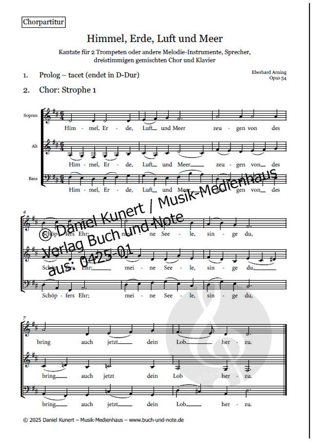 - 2 Trompeten, Sprecher, Gemischter Chor (3-stimmig) und Klavier