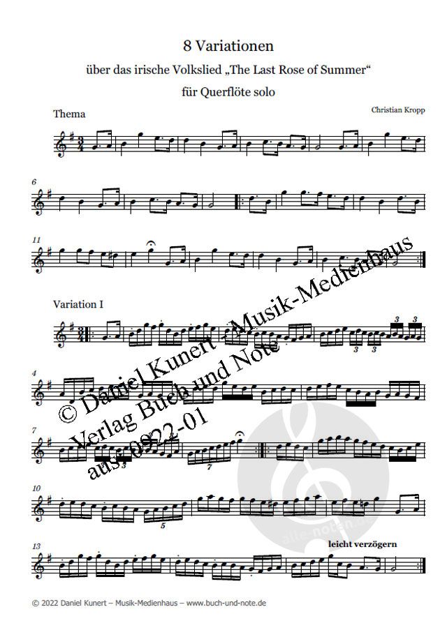 Acht Variationen über das irische Volkslied "The Last Rose Of Summer" für Querflöte solo Geheftete Ausgabe.