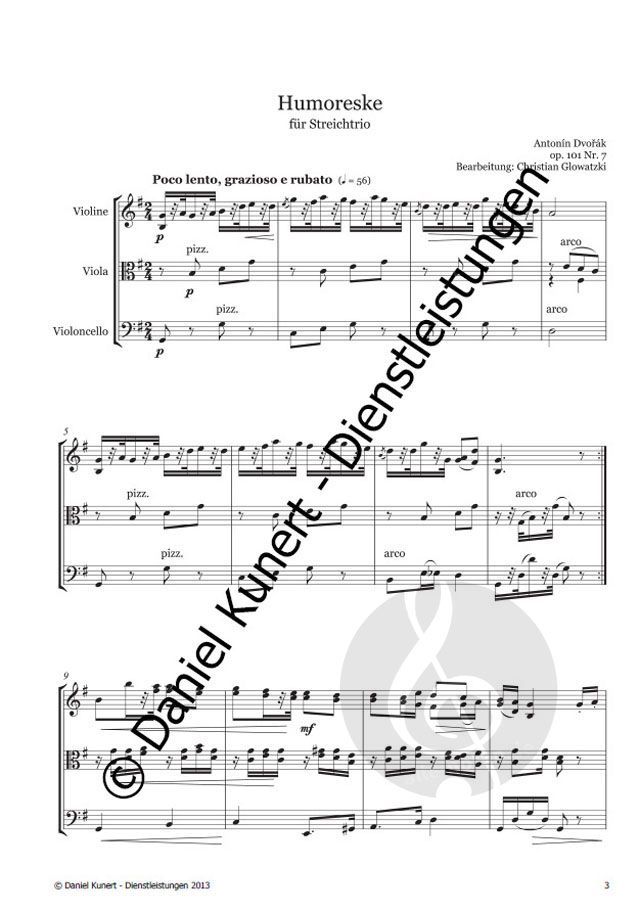 Die Humoreske ist eines der bekanntesten Stücke des böhmischen Komponisten Antonin Leopold Dvorak. Dies heitere, kurzweilige Werk ist in vielen Varianten bereits erschienen. Auf Anfrage des Ensembles...