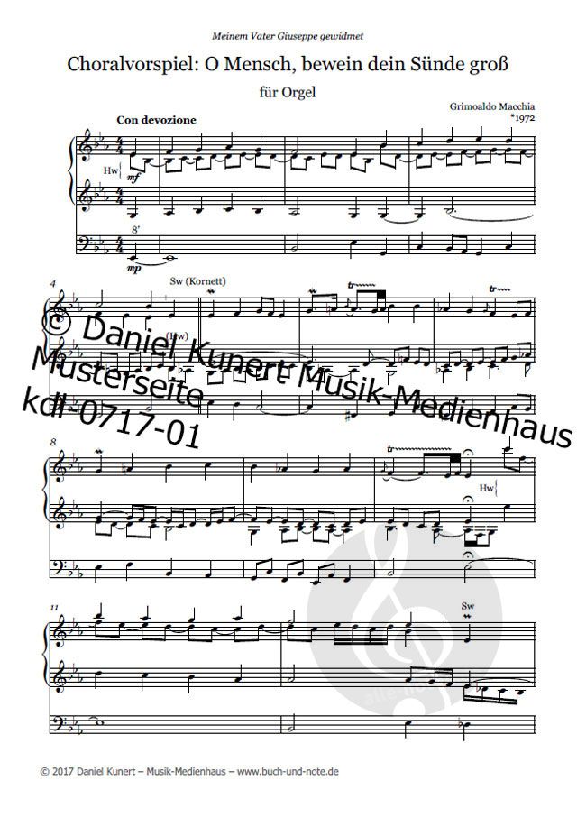 Das erste Werk des italienischen Organisten und Komponisten im Verlag "Buch und Note". Ein eindrucksvolle Choralvorspiel für Orgel solo, welches in Gottesdienst und Konzert seine Wirkung nicht verfehl...