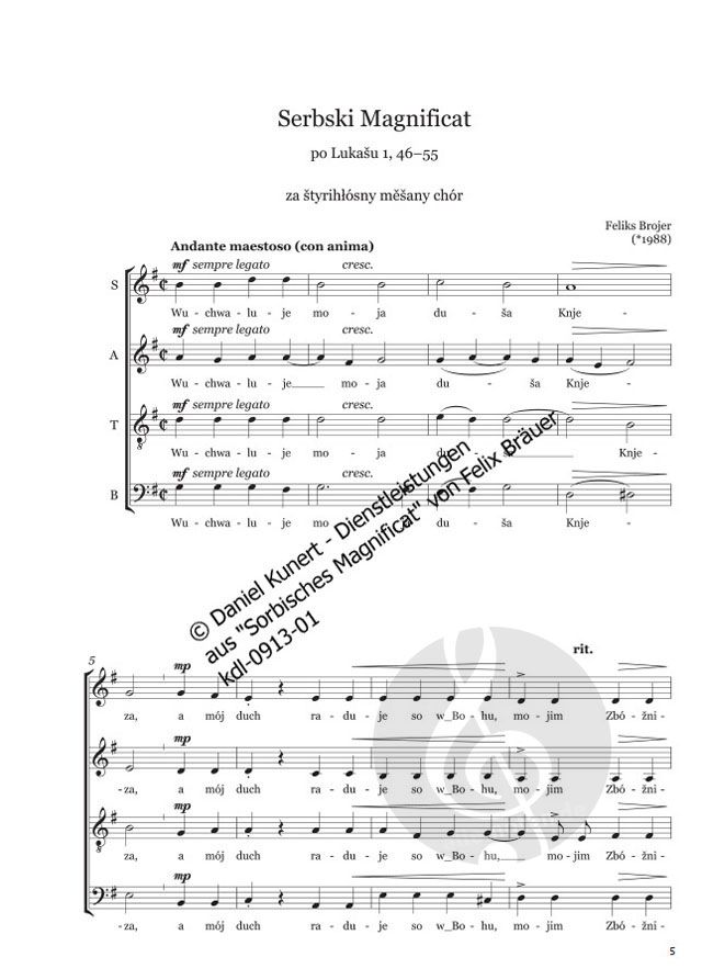 Felix Bräuer, geboren 1988, schuf mit diesem Magnificat ein außergewöhnliches Chorwerk. Vertonungen des Lobgesangs Mariens aus dem Lukasevangelium gibt es viele, jedoch ist diese Ausgabe aufgrund ihre...