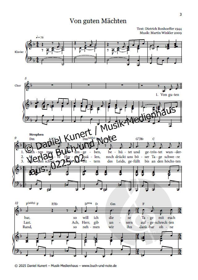 Eine Neuvertonung des berühmten "Von guten Mächten" von Dietrich Bonhoeffer für gemischten Chor SATB und Klavier. Bereits mehrfach in der Praxis erprobt, nun endlich für alle Chöre verfügbar. Gehefte...