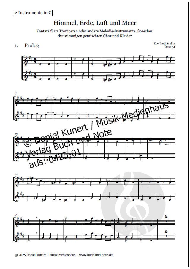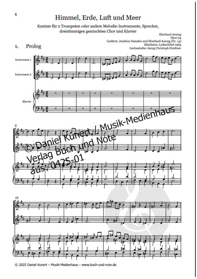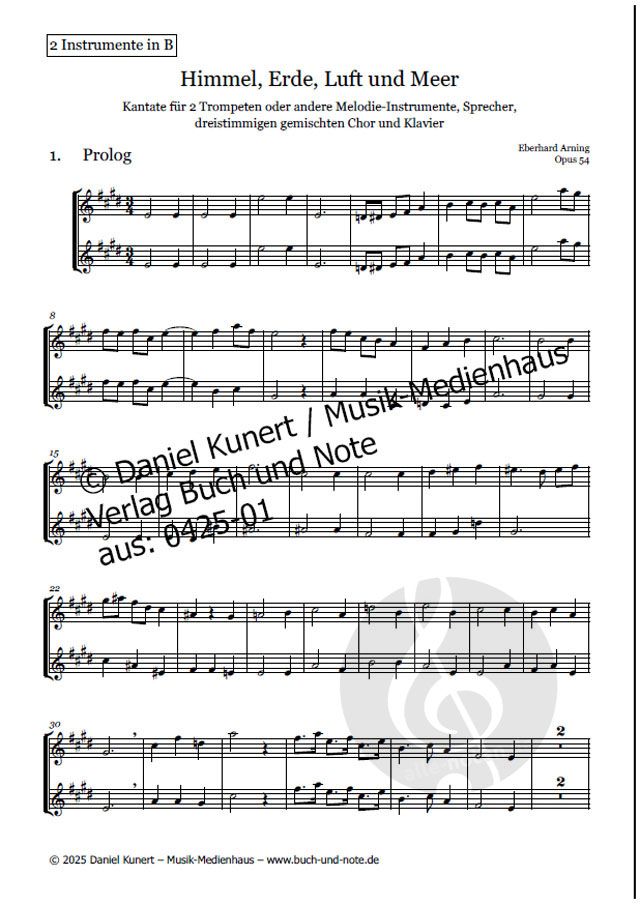 - 2 Trompeten, Sprecher, Gemischter Chor (3-stimmig) und Klavier