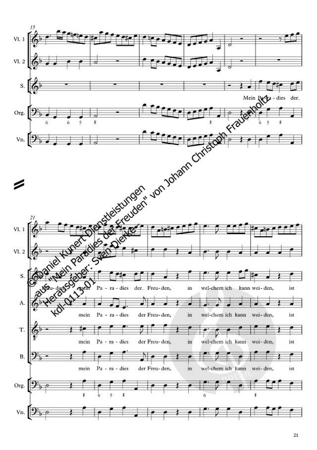 - Gemischter Chor (SATB), 2 Violinen, Cello und Orgel