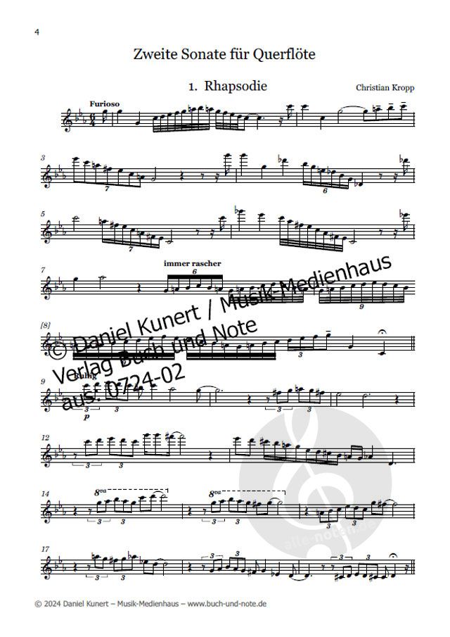 Die zweite Sonate für Flöte solo des Mühlhausener Komponisten in den Sätzen Rhapsodie, Vivaldiana und Rhythmic. Geheftete Ausgabe.