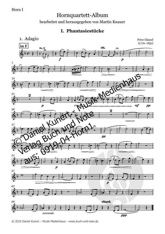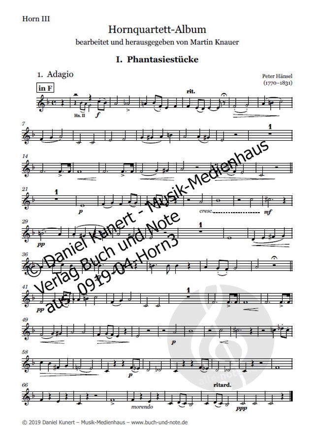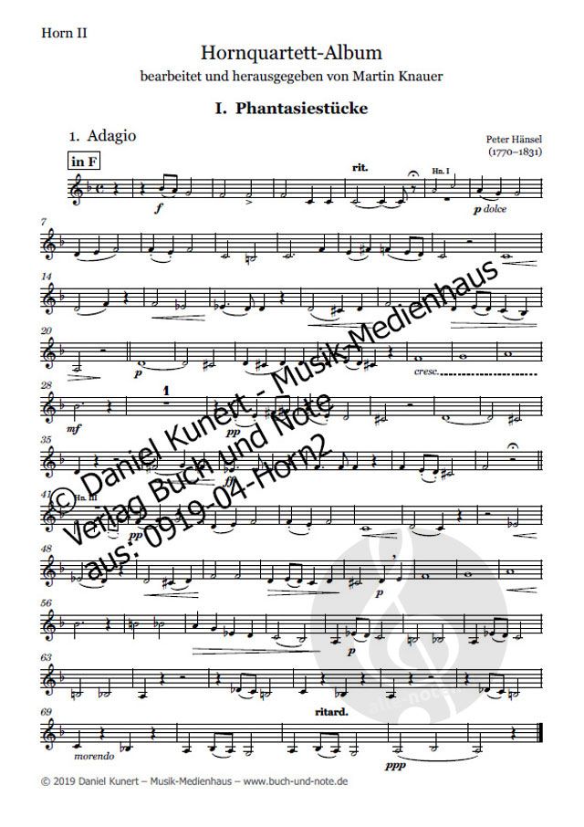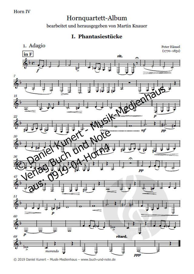 Diese Sammlung mit Werken verschiedenster Komponisten wird die Mitglieder eines Hornquartettes für einige Zeit mit guter Musik versorgen. Entdeckt wurden Sie von Christian W. Petersen (Berliner Hornq...