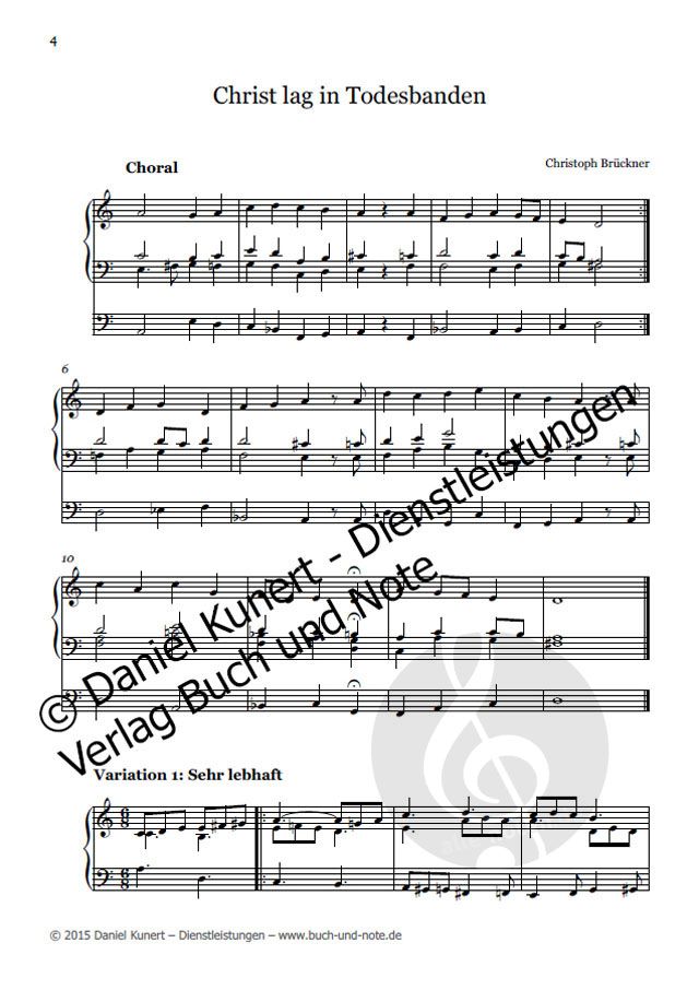 Christoph Brückner's Beitrag zur Luther-Dekade Eine Verwandlung des Choral "Christ lag in Todesbanden" in den folgenden Sätzen:ChoralVariation 1: sehr lebhaftVariation 2: Pièce exotiqueVariation 3: Co...