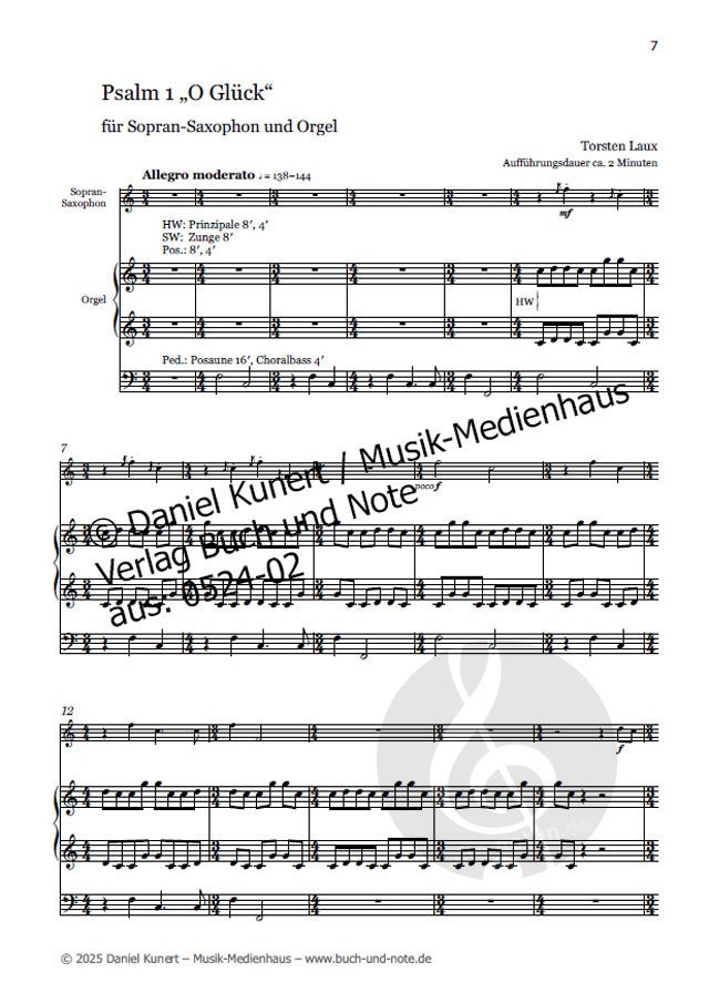 Mit Psalm-Texten, deutsche übersetzung der jüdischen Autoren Martin Buber und Franz Rosenzweig Ringbindung, 38 Seiten/Stimmen geheftet, 12 Seiten, Partitur + Sax-Stimme.
