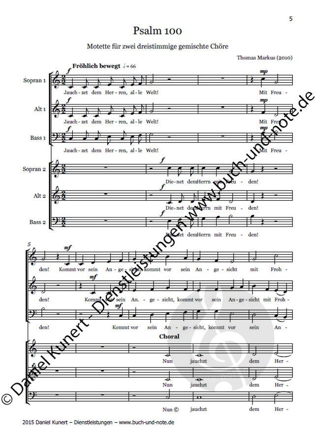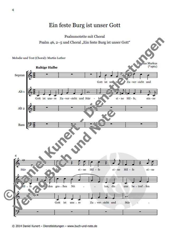 Choralmotette für 4stg. gemischten Chor (SATB) Thomas Markus schuf mit dieser Choralmotette ein eindrucksvolles und den Text bewusst interpretierendes Werk, welches an den Chor hohen Anspruch stellt,...
