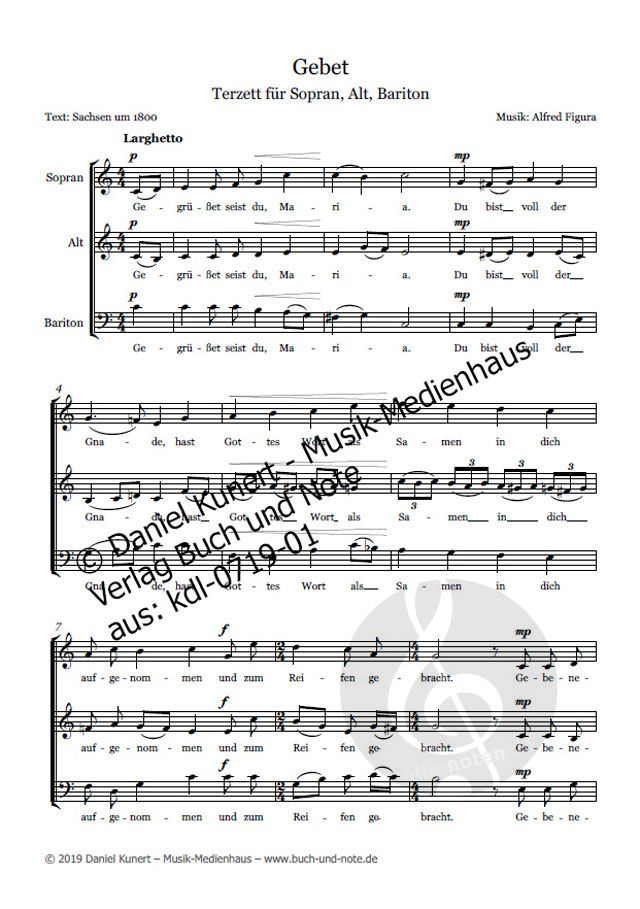 Diese Vertonung des aus dem Lukasevangelium stammenden Textes wurde für 2 Frauenstimmen und eine Männerstimme konzipiert. Dabei wurde der Umfang der Männerstimme so gestaltet, dass auch Chöre ohne hoh...