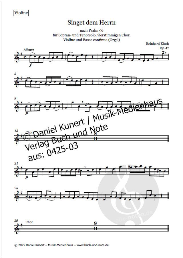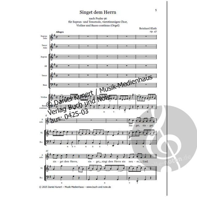 - Soli (ST), gemischter Chor (SATB), Violine und Basso Continuo