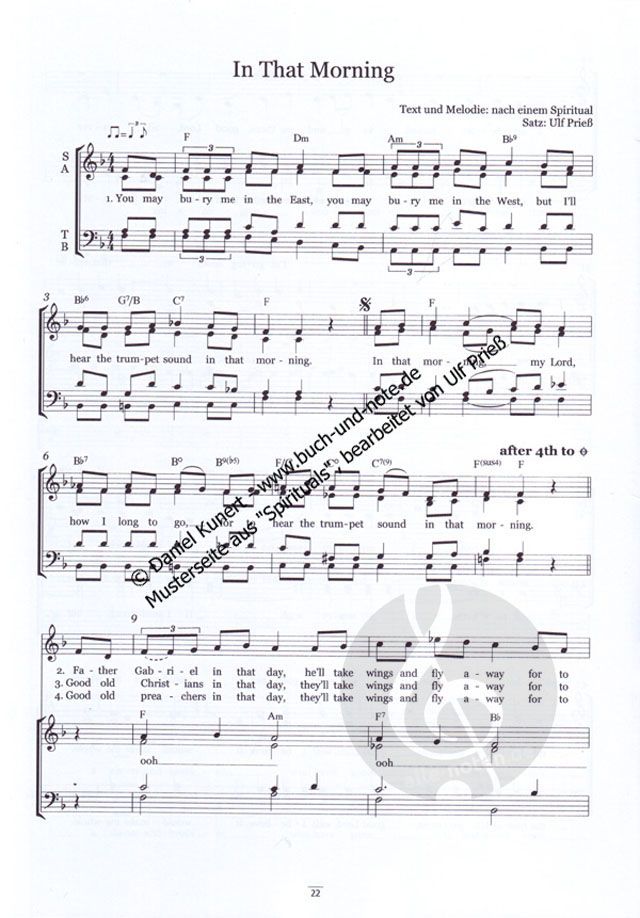 geheftet, 43 Seiten 21 Spirituals für 4-stimmigen Chor. Leicht gesetzt und somit für Laienchöre gut geeignet. Diese Sammlung ist vor allem für Laienchöre interessant, die ihr Repertoire mit Liedern er...