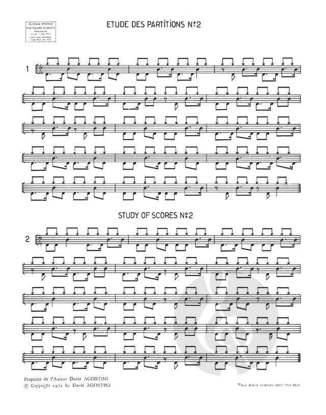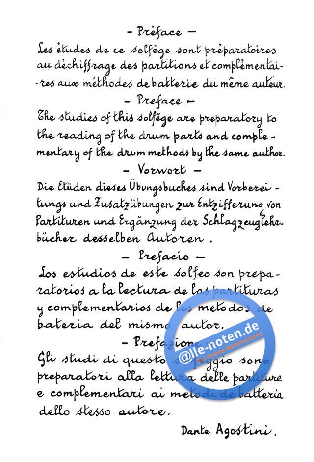 Etüden für Schlagzeug, Partituren. 123 Übungen in fortschreitendem Schwierigkeitsgrad von Dante Agostini.