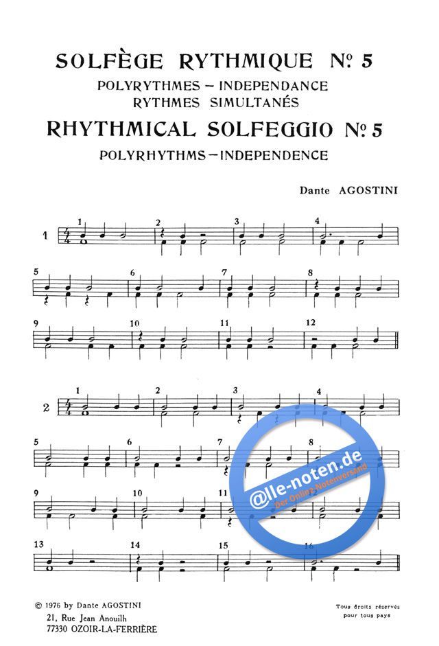 Rhythmische Leseübungen für Schlagzeug und andere Instrumente, franz. /engl. /dt. /ital. /span. Text