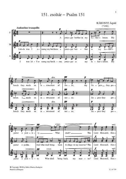 The text of this choral work is an old translation into English of a now apocryphal psalm taken from the Septuagint (the first Greek translation of the Old Testament). The psalm is to this day a canon...