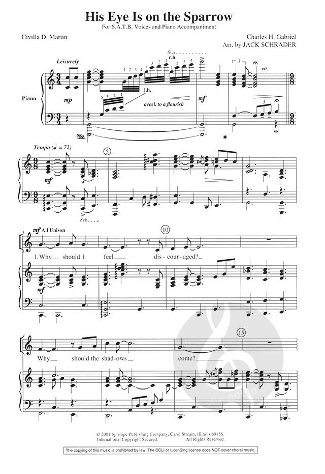 Jack Schrader has provided a wonderful blues-gospel setting for Civilla D. Martin and Charles H. Gabriel's encouraging song about God's loving care. For SAB or SATB choirs with optional solo, this is...
