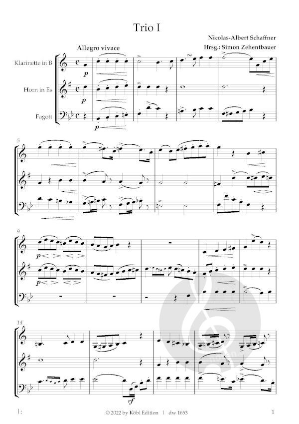Neuausgabe der bekannten Trios von Nicolas-Albert Schaffner Sehr schöne Orginalstücke für Klarinette, Horn und Fagott