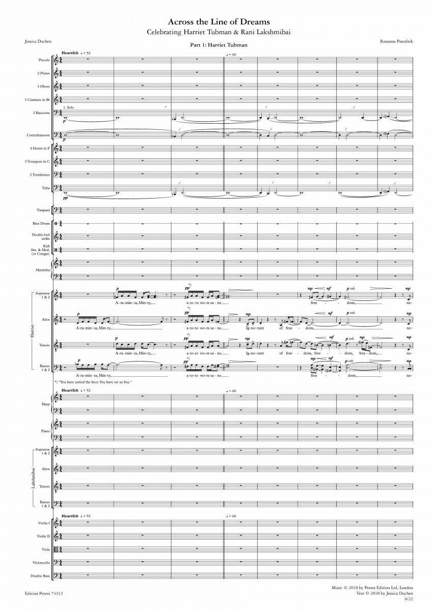 Across the Line of Dreams von Roxanna Panufnik ist ein 17-minütiges Werk für Doppelchor und Orchester, mit einem Text von Jessica Duchen. Das dreiteilige Werk zelebriert die Geschichten zweier außerge...