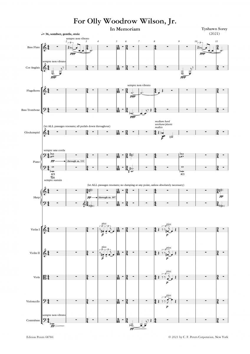 For Olly Woodrow Wilson, Jr. in memoriam für großes gemischtes Ensemble wurde von Tyshawn Sorey im Auftrag der San Francisco Contemporary Music Players und von Radio France und dem Ensemble Interconte...