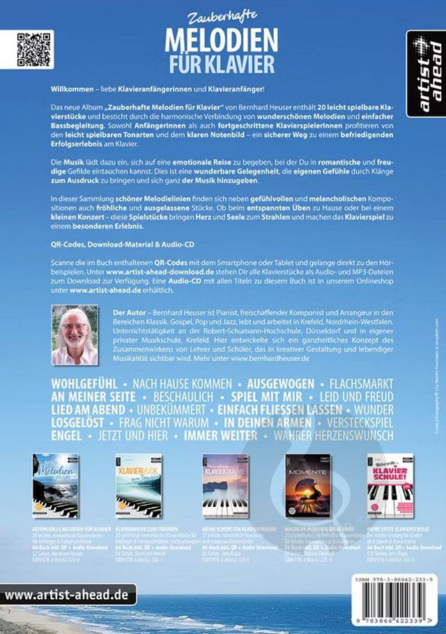 Willkommen - liebe Klavieranfängerinnen und Klavieranfänger! Das neue Album "Zauberhafte Melodien für Klavier" von Bernhard Heuser enthält 20 leicht spielbare Klavierstücke und besticht durch die harm...