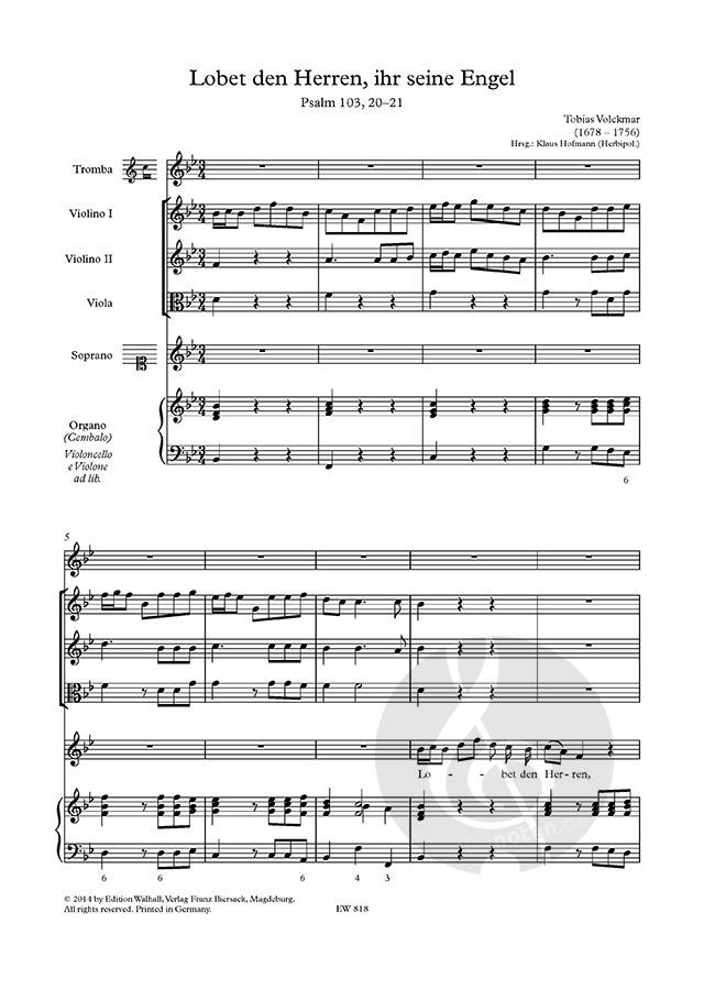 - Gesang (hoch), Trompete, 2 Violinen, Viola und Basso Continuo
