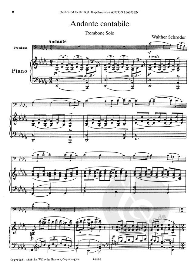 Walter Schroder's Andante Cantabile for Trombone and Piano.