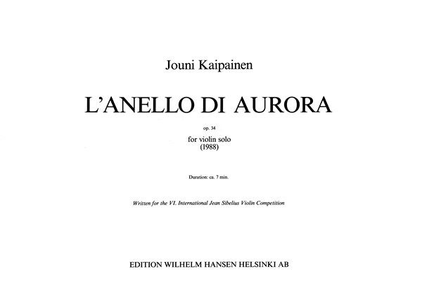 L'anello Di Aurora Op. 34 by Jouni Kaipainen for Violin solo. Written for the VI. International Jean Sibelius Violin Competition.