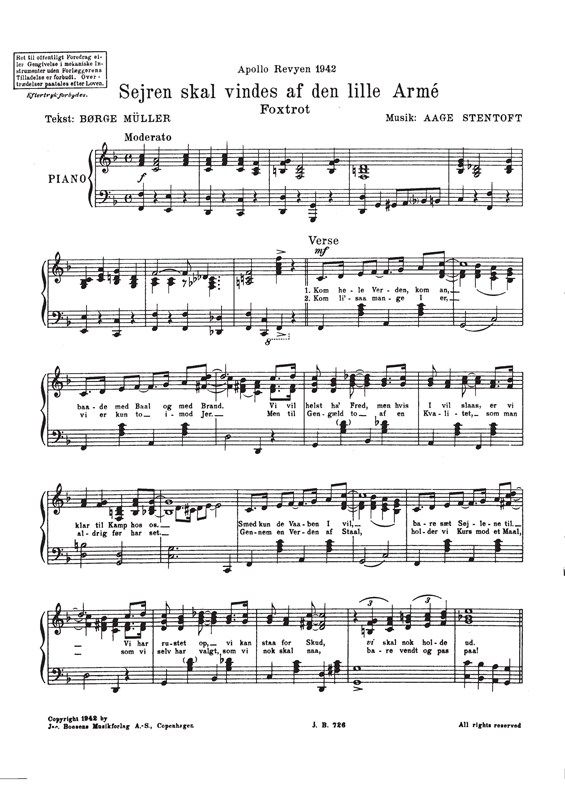 Music: Aage Stentoft. Text: Borge Müller. Voice and piano