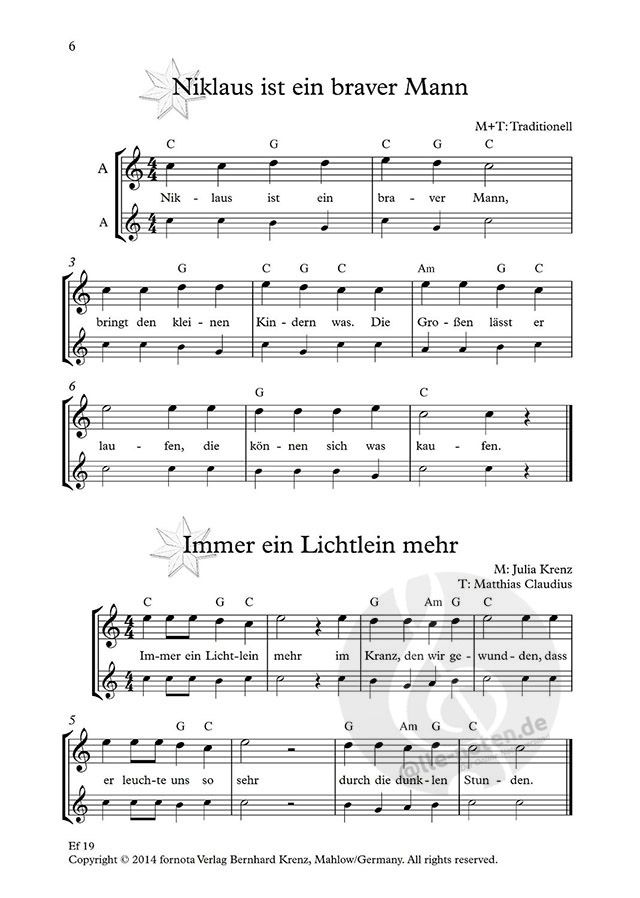 > Für Schüler des ersten Unterrichtsjahres > Ab der ersten Unterrichtsstunde einsetzbar > 16 Winter- und Weihnachtslieder in jeweils zwei Schwierigkeitsstufen: > einstimmig (die Melodie ist auf beide...
