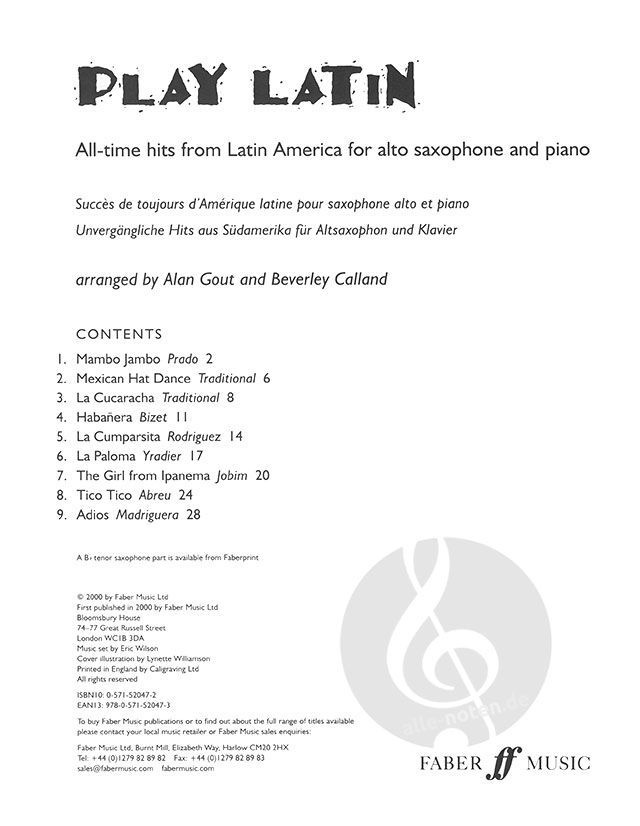 Seit 1969 sind wir von Alle Noten Ihr kompetenter Ansprechpartner und freuen uns, Ihnen das inspirierende Programm von Faber Music in unserem Onlineshop alle-noten.de zu präsentieren. Als einer der größten Anbieter Europas mit über 1.000.000 Noten finden Sie bei uns zu vielen Titeln Musterseiten und Hörbeispiele, die Ihre Auswahl erleichtern. Profitieren Sie von unserer schnellen Lieferung – über 100.000 Noten sind sofort lieferbar – und dem kostenfreien Versand innerhalb Deutschlands ab € 35,–. Lassen Sie sich von Faber Music begeistern und entdecken Sie Musik, die bewegt und bildet!