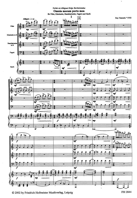 - Querflöte, Klarinette, Bassklarinette, Fagott und Harfe