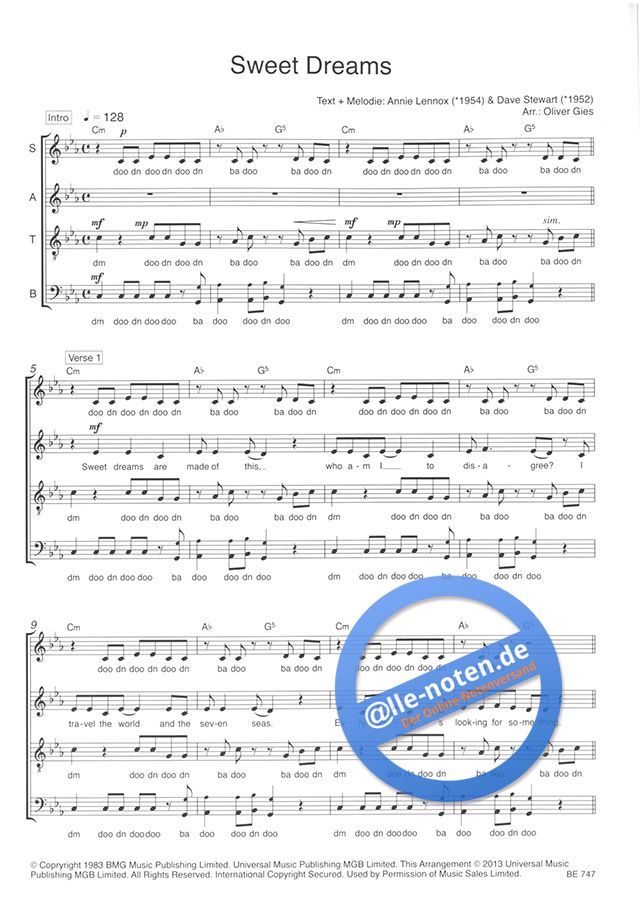 Sweet Dreams' ist einer der bekanntesten Songs der Gruppe 'Eurythmics' und hervorragend geeignet für eine A-cappella-Version. Oliver Gies, einer der kompetentesten Chorarrangeure in Deutschland, hat d...