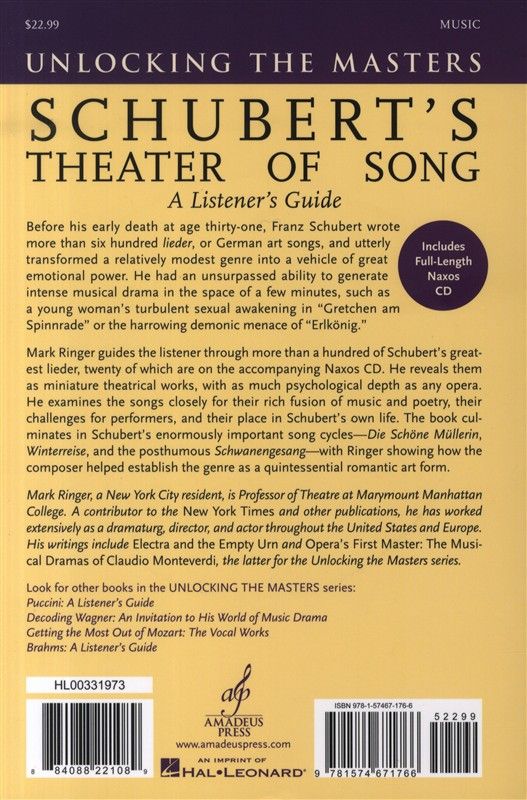Ringer sheds new perspectives on Schubert's songs, focusing on their incomparable dramatic power, which often exceeds that of many a full-fledged opera. But Schubert's 'stage' was not to be the public...