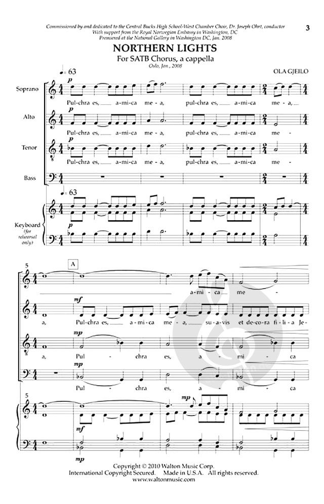For the setting of Lux Aurumque, the composer chose the Latin translation of an Edward Esch poem, enhancing the elegant simplicity of this new work. The tight harmonies will need to be carefully balan...