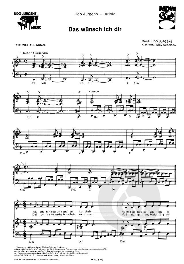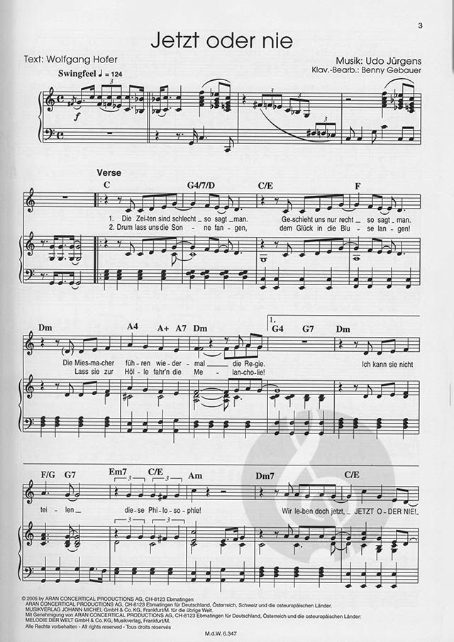 Songbuch mit 9 Hits von Udo Jürgens für Gesang und Klavier mit Akkordsymbolden.