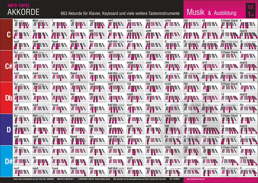Auf vielfachen Wunsch unserer Kunden haben wir eine Übersicht aller im normalen Spielbetrieb vorkommenden Akkorde erstellt. Jeder, der das Klavierspiel (oder das Spielen auf einem anderen Tasteninstru...