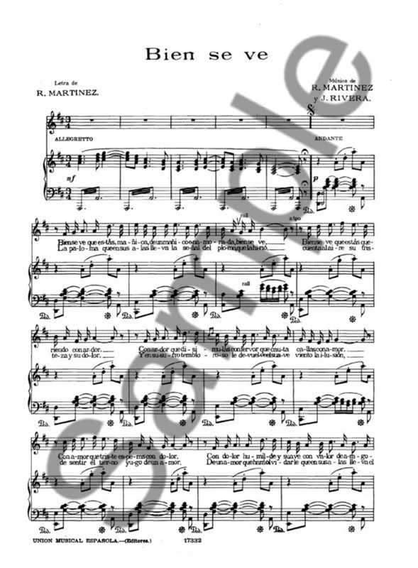Juan Martinez Abades ' Que La Mar Es Muy Traidora, scored for Voice and Piano.