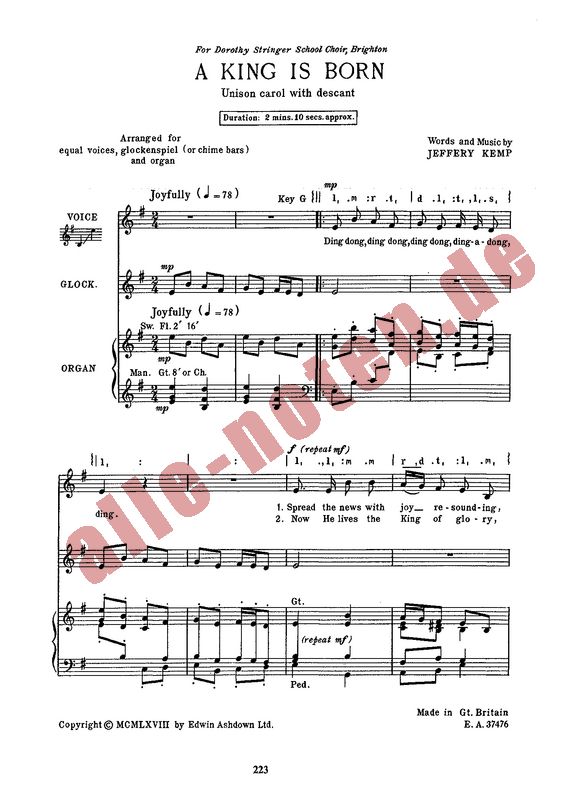 Unison carol with descant. Words and music by Jeffery Kemp.