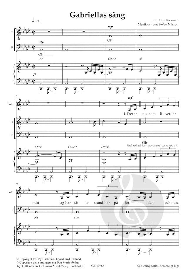 Gabriellas Lied aus dem Film 'Wie im Himmel' für Solo-Gesang im Violinschlüssel und gemischten Chor. In schwedischer Sprache.