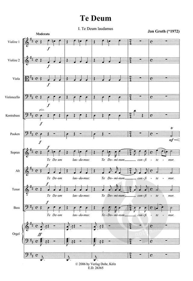 - Gemischter Chor (4-stimmig), Streicher, Pauke und Orgel